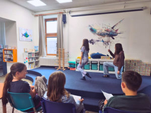 Sešla se skvělá parta dětí, které se nejdřív poznávaly při veselých hrách a pak s nadšením tvořily. Zkoušely, jak vypadá psaní příspěvku ke knižní novince, zahrály si krátké scénky podle zadaných instrukcí a hlavně – hodně se povídalo, smálo a sdílelo.