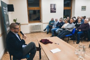 Beseda s politickým komentátorem Seznam Zpráv Jindřichem Šídlem přilákala přes 120 návštěvníků. Během dvouhodinové diskuze se probírala politika u nás i v zahraničí (Slovensko, USA), došlo i poměry na české mediální scéně a na nálady v naší společnosti. Jindřich Šídlo přinesl vhled do zákulisí současného dění, zpestřený mnoha vtipnými postřehy a vzpomínkami.