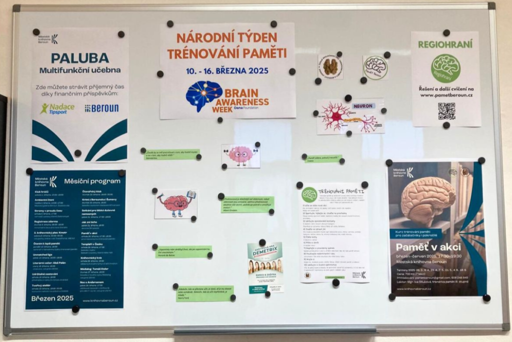 Trénování paměti knihovna pořádá ve spolupráci s Mgr. Ivou Stlukovou, certifikovanou trenérkou paměti III. stupně a členkou České společnosti pro trénování paměti a mozkový jogging.