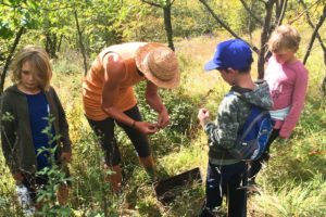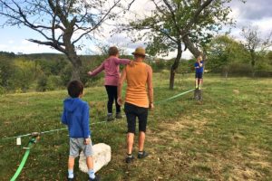 Nakonec jsme se zaměřili ještě na mahonii cesmínolistou, další z invazivních druhů. Kromě toho si děti vyzkoušeli i chození po slack line a poznali nové místo cenné pro berounskou biodiverzitu.