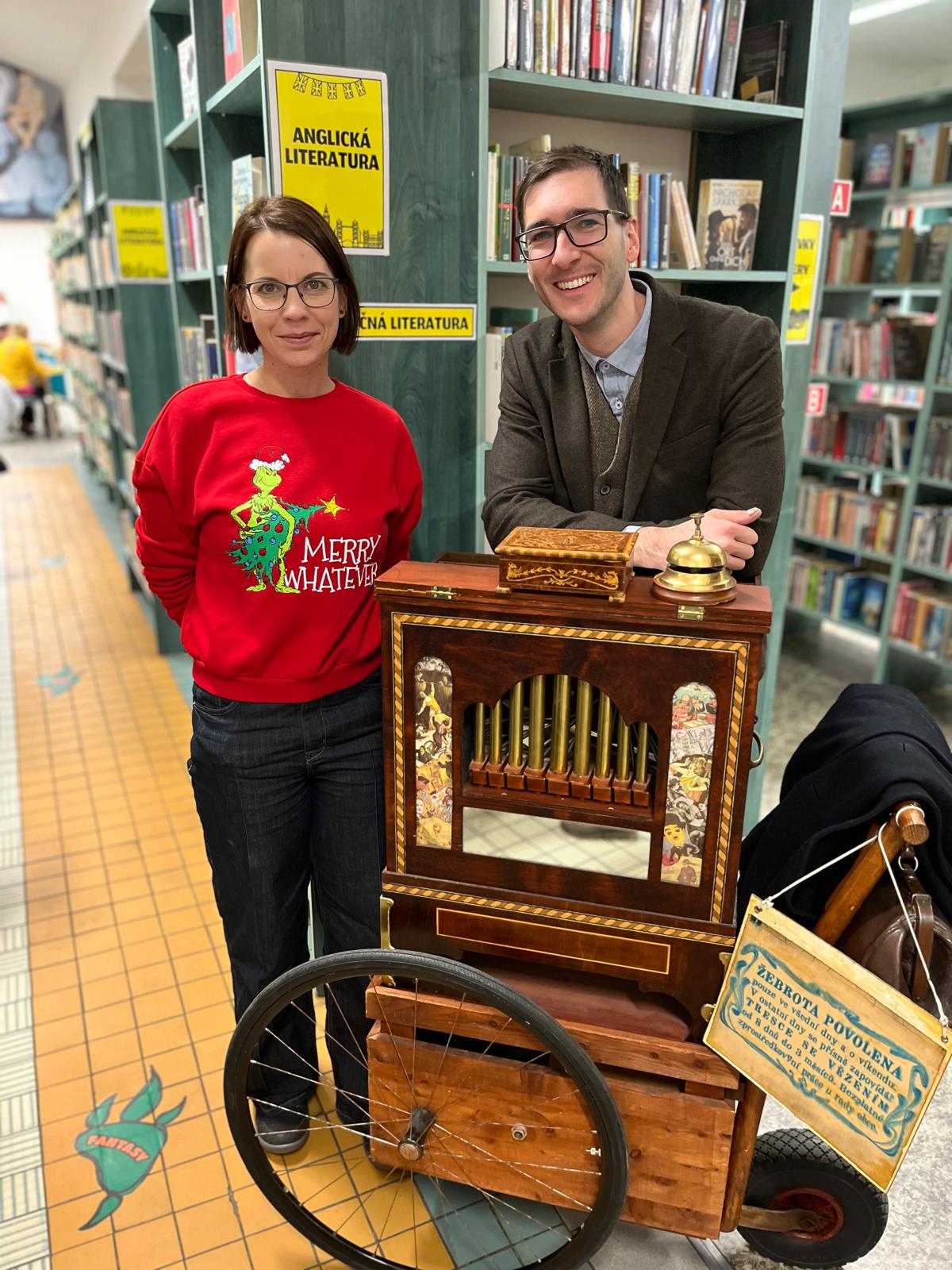 Jarmark by nebyl úplný bez hudebního doprovodu. Dopoledne prostory knihovny ožily tóny nového komunitního pianina, flétny, houslí a kytary, na které zahráli knihovníci a jejich přátelé. Součástí odpoledního programu bylo vystoupení flašinetáře Patrika Pařízka. Ten kromě kouzelných melodií připravil také zajímavé povídání o historii flašinetu.